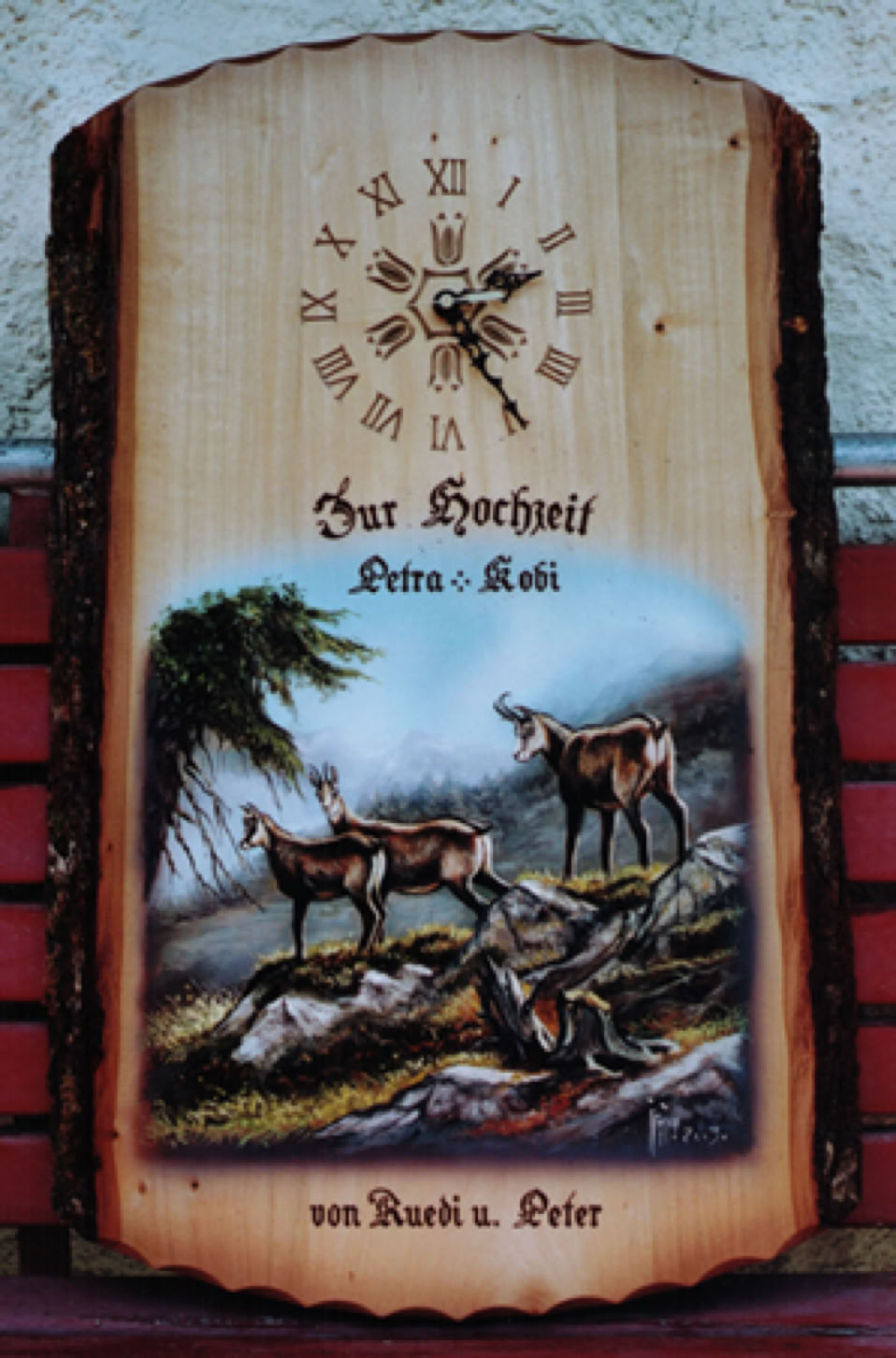 Rindenbrett mit Uhr 1